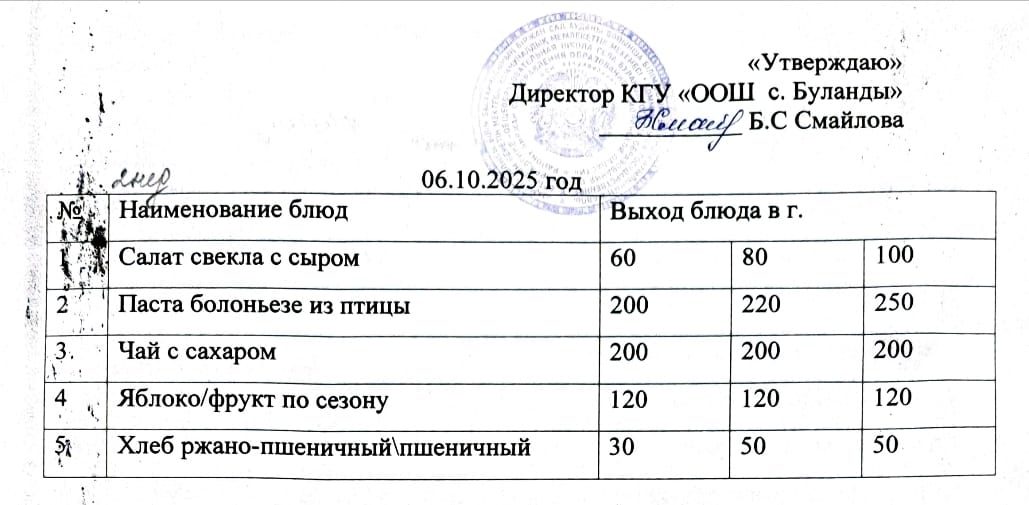 Школьное питание 06.10.2025