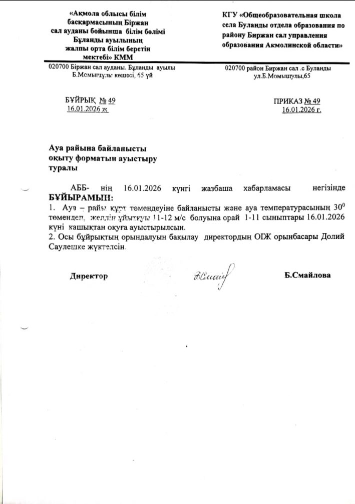 КГУ «ОБЩЕОБРАЗОВАТЕЛЬНАЯ ШКОЛА СЕЛА БУЛАНДЫ ОТДЕЛА ОБРАЗОВАНИЯ ПО РАЙОНУ БИРЖАН САЛ УПРАВЛЕНИЯ ОБРАЗОВАНИЯ АКМОЛИНСКОЙ ОБЛАСТИ»